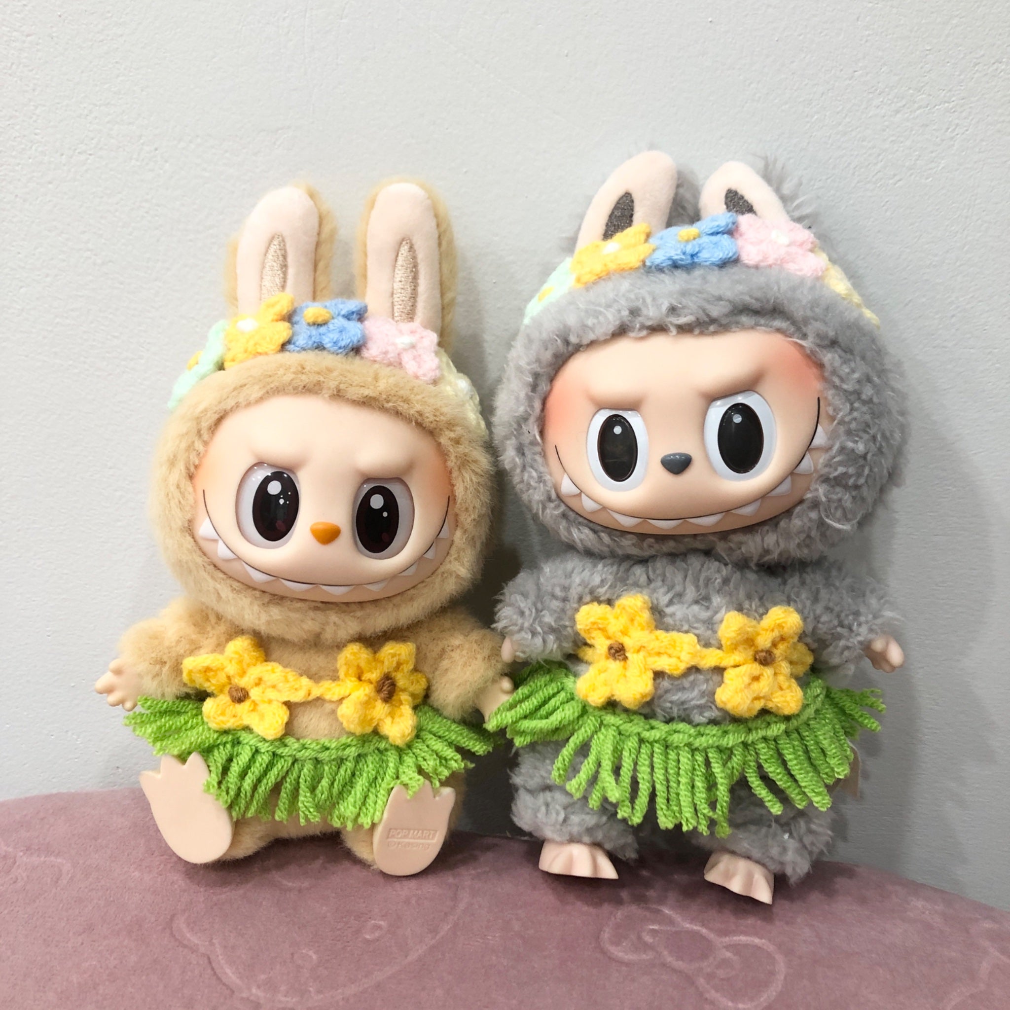 The Yellow Top Hula Outfit comes with a cute yellow flower bikini top, a green hula skirt and a cute flower headband. It's perfect for a day out at the beach or a vacation to Hawaii! Please note listing is for ONE set of the outfit only and does not come with the Labubu(s) that's working hard to model the clothes for your reference.
