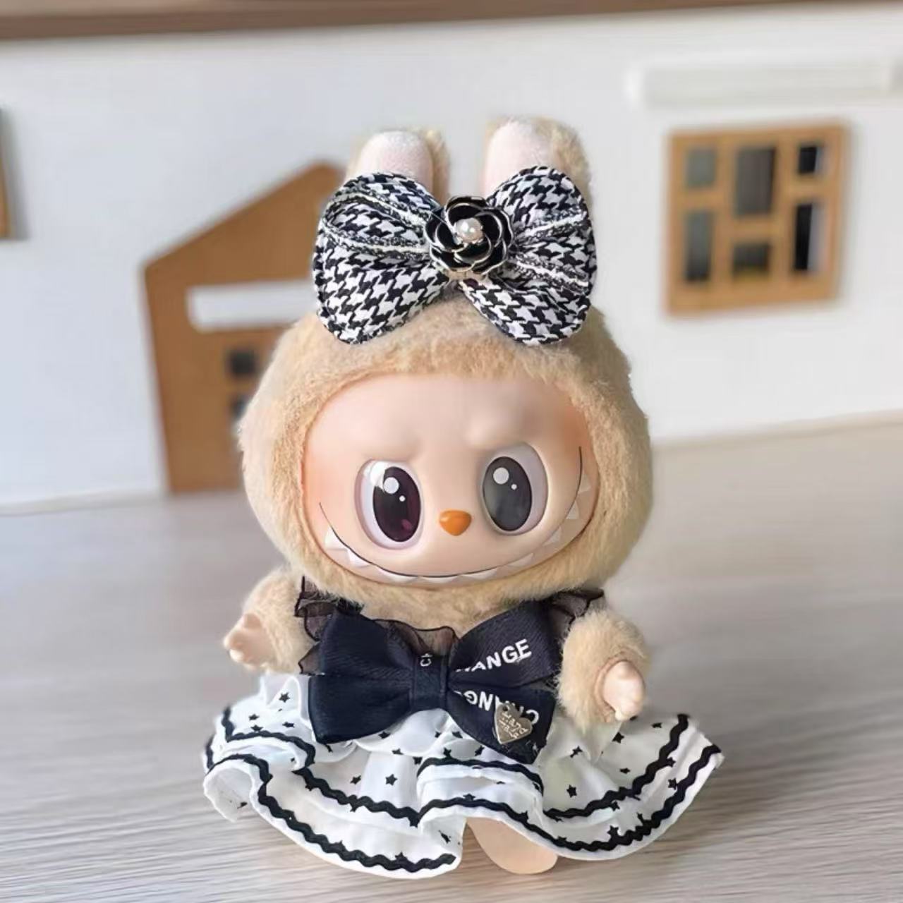 White "C" Layered Dress + Bow - Labubu Clothes for Have A Seat