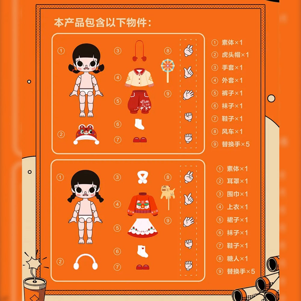 The name BJD stands for Ball-Joint-Doll which is exactly what these figures are. Each doll features multiple points of articulation in it's arms, legs, waists and head. It includes headwear, accessories, top, bottom, socks, shoes and even 5 different hand parts so you can pose these dolls however you like.