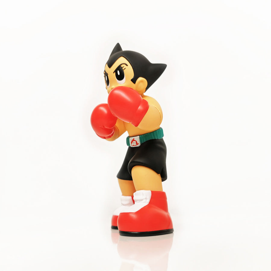 The figure features the iconic Astro Boy in the OG colorway in a fighting pose befitting the mighty atom. With hands at the ready and an aggressive, squared stance.